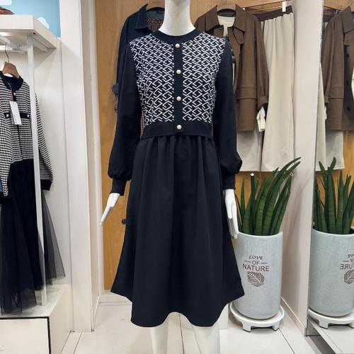 클리지 DP01 스퀘어 패턴 퍼프 니트 원피스 대동백화점 CP7WOP05