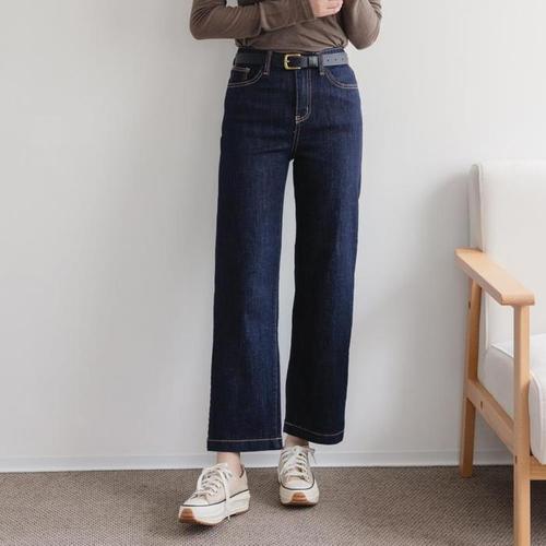 블레스유 여성 데님팬츠 일자 청바지 세미와이드청바지 심플 데일리룩