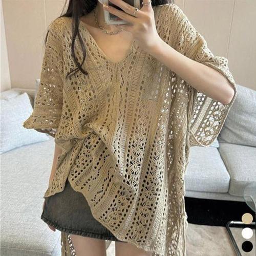 [에이치플러스몰]티셔츠 오버핏 정장 신상 롱 니트티 여성니트 라운드