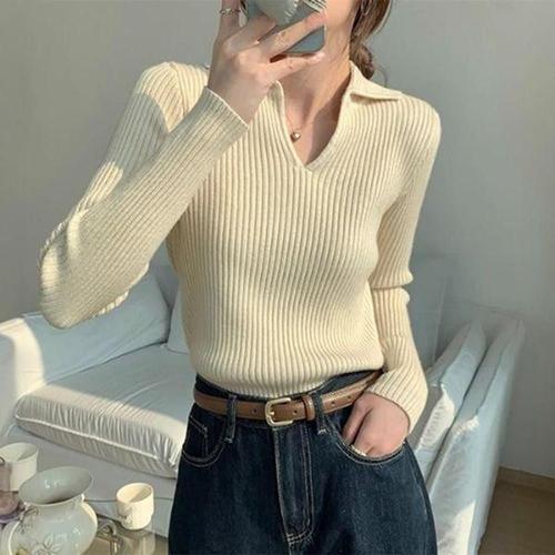 [에이치플러스몰]기본핏 정장 브이넥 여자니트티 캐쥬얼 겨울 코디 봄