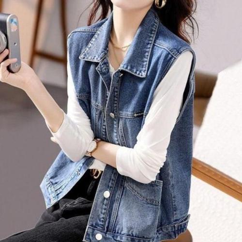 여성여름베스트 사계절 루즈핏 청조끼 데님 베스트 티셔츠 레이어드