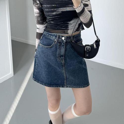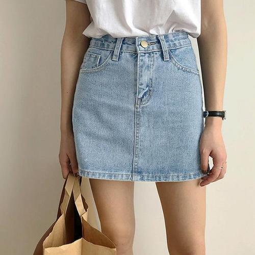 shsure-48 하이웨이스트 A라인 데님 스커트 빈티지 스트레이트 청 스커트 여성용 데일리