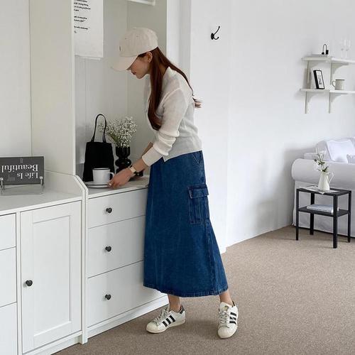 [다잇템]여자 데님스커트 롱 주머니 SS H라인 진 스커트 (13250644A)