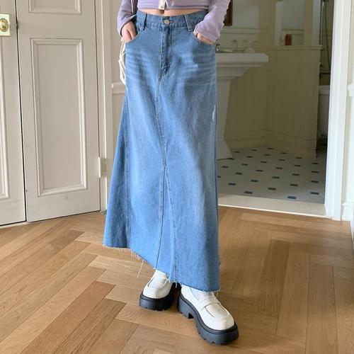 [하프클럽/]사계절치마 슬림핏 여성 앞트임 청치마 롱치마 데님