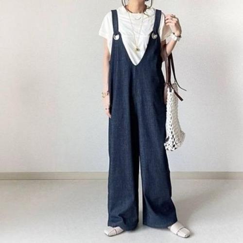 여자점프수트 여성 진청 캐주얼 데일리 여행룩 코디 데님 점프수트