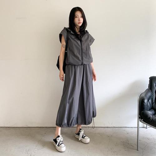 여자 박시핏 집업 긴치마 슬리브리스 후디 세트