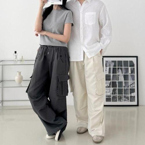 [에이치플러스몰]스트링 카고바지 남녀공용 가을 밴딩 카고 팬츠
