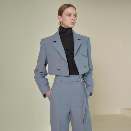 [옷자락]여자 캐주얼정장 클래식 버튼 커리어우먼 크롭 자켓_3