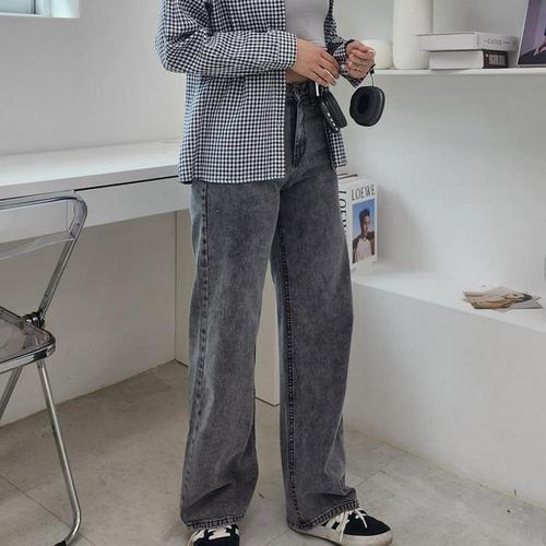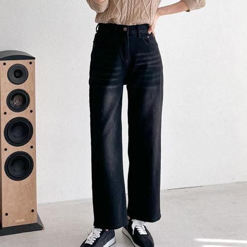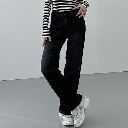 [다잇템]여성 워싱 일자핏 베이직 검정데님 SS 청바지