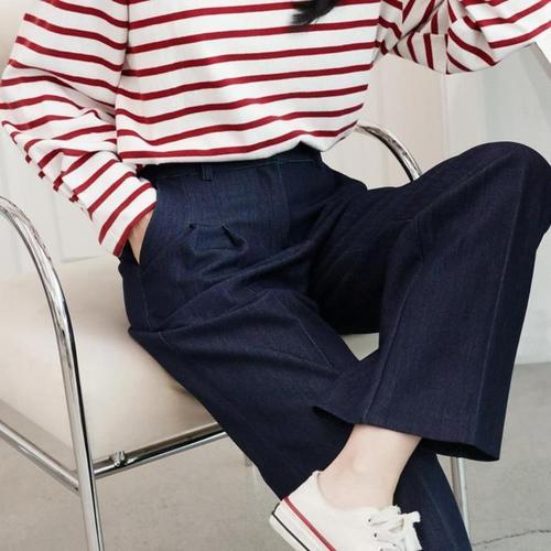 [다잇템]여자 검정데님 편한 세미놈코어 바지 (18138677A)