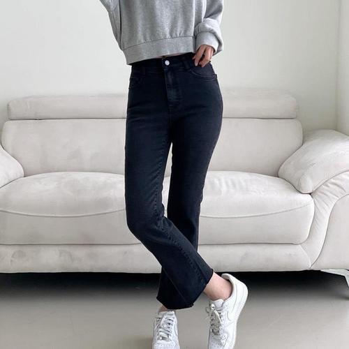 [옷자락]여자 일자핏 FW 편한 검정데님 밑단컷팅 데님팬츠