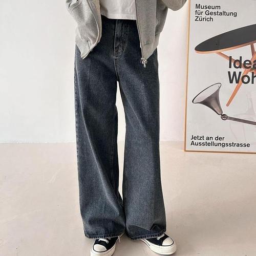 [다잇템]여자 검정데님 워싱 논스판 넓은 데님팬츠 (18646285A)