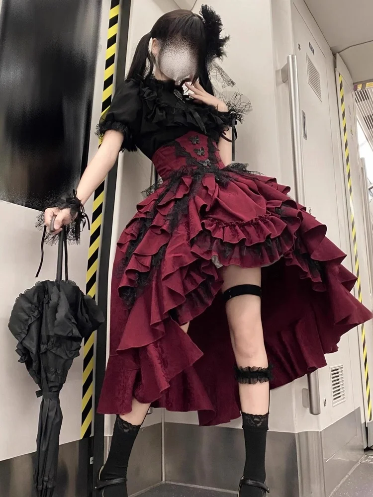 고딕 스타일 할로윈 로리타 소녀 투피스 세트 슬리밍 허리 디자인 크리스마스 코스프레 다크 테마 패셔너블 여성 앙상블