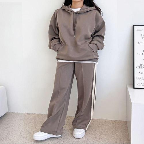 가을 겨울 여성 후드티+와이드 레그 팬츠 투피스 캐주얼 풀오버 루즈 긴팔 트랙수트 편안한 스포츠 여성복