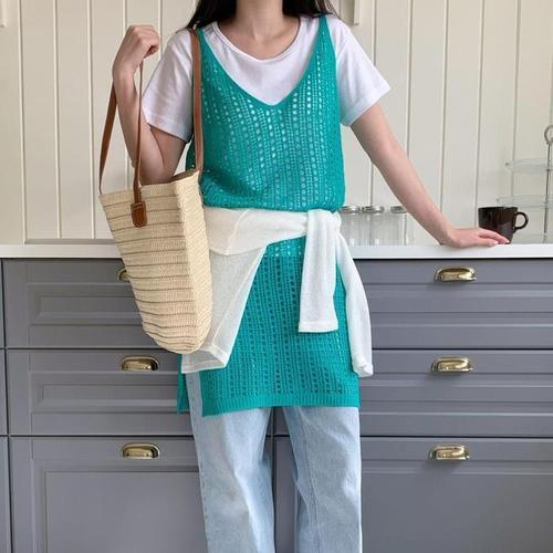 [다잇템]여자 코디 휴양지룩 비침 코르셋 펀칭 원피스 (32684589A)