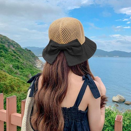 여자 밀집모자 리본 버킷햇 햇모자 휴양지 여름 WFMB10J