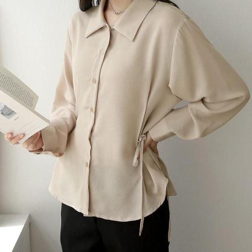yuviny (유비니 )여성 허리스트링 카라 셔츠 블라우스 루즈핏 오피스룩 출근룩 CS0001
