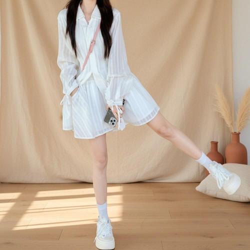 [옷자락] 여성 핀턱 허리 볼륨 퍼프 소매 미니 원피스셔츠