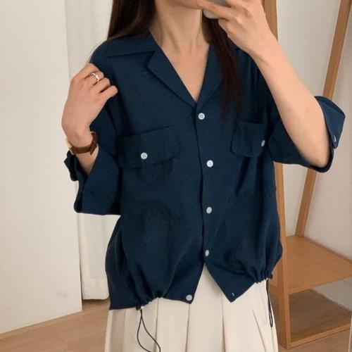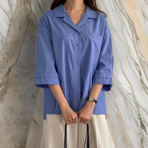 [다잇템]여자 언발 주머니 슬릿 칠부 카라셔츠 블라우스 (30466575A)