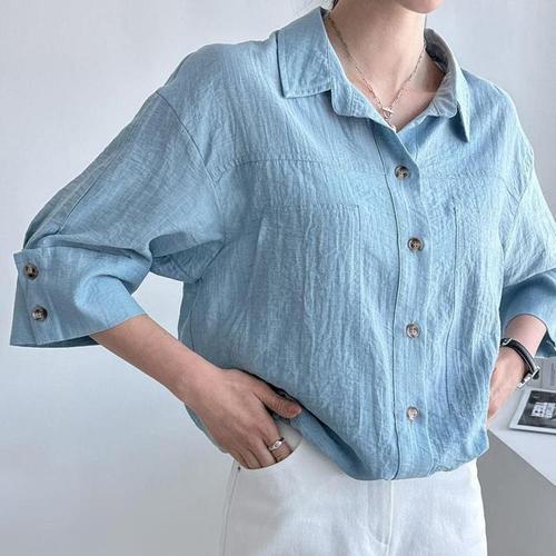 여성용 7부 린넨 셔츠 블라우스 상의 면마 남방 중년 여름 고급 칠부소매