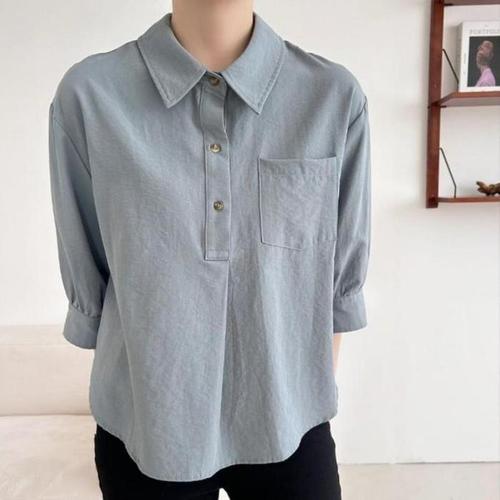 Makone 여성 솔리드 카라넥 패션 캐주얼 트랜드 엘레강스 데일리 셔츠 7부 소매 심플