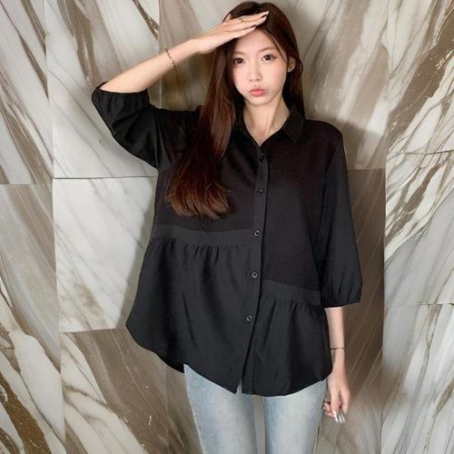 캐주얼 프릴 블라우스 여성 루즈핏 셔츠 7부(HSJ-WFGFBKE)