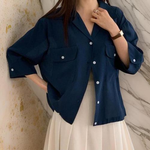 [다잇템]여자 칠부반팔 세미크롭 카라넥 남방 (32541006A)