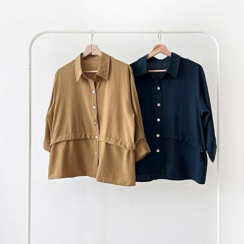 [다잇템]여성 코튼 박시핏 레이온 칠부 남방 (32573439A)