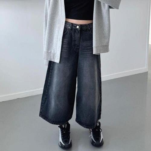 [옷자락] 여자 가을옷 절개 벌룬 와이드핏 9부 통 밴딩 청바지