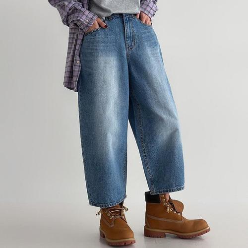 [신상오픈런]테이퍼드진 9부청바지 스판 쫀득 여성 워싱 배기팬츠 (31645994)