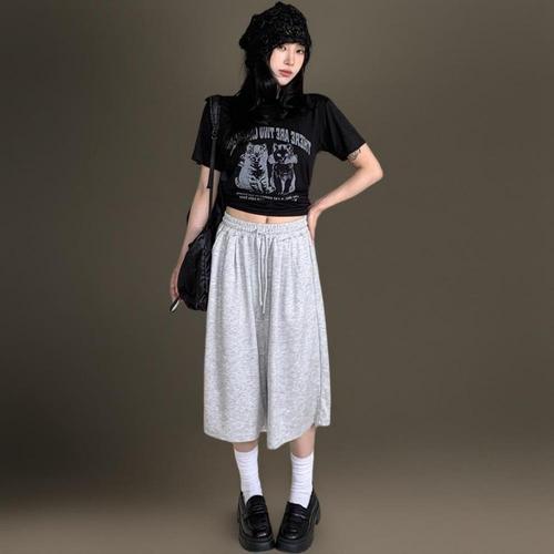 남여공용 국산 여름 7부 플리츠 밴딩 팬츠 5C-PT7-Q056-차콜