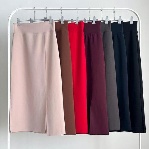 [옷자락]여자 가을하객룩 H라인 앞트임 쫀쫀스판 하이 롱스커트