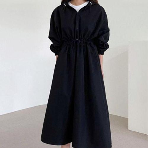 [에이치플러스몰]데일리 여성 후드 롱원피스 스트랩 아노락 원피스
