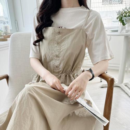 [옷자락] 여자 린넨 아노락 루즈핏 뒷트임 나시 롱 원피스
