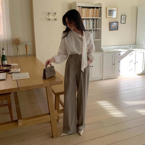 [다잇템]여자 롱 넓은 고무줄 정장바지 출근룩 팬츠