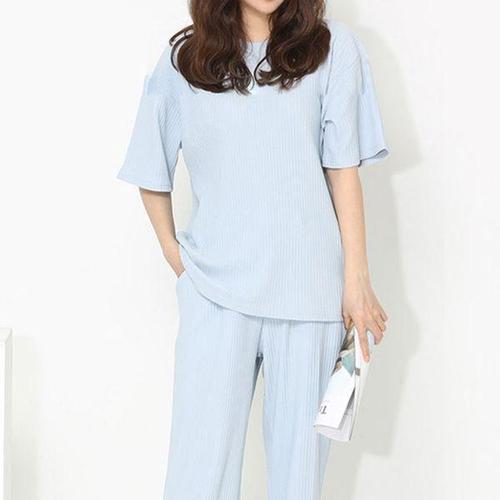 [옷자락]여성 롤업 반팔 기본 티셔츠 밴딩 와이드 숏팬츠 트레이닝 세트