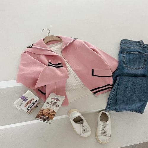 [다잇템]여자 야구점퍼 미니멀리즘 파란색 카라 가디건 (12063042A)