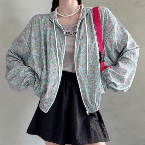[옷자락] 여성 우산룩 여름 자켓 플라워 방풍 퍼프 후드 집업
