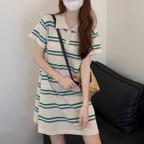 [셀러허브_여성트랜드패션]ONM 여자 여름 외출 나들이 스트라이프 포인트 카라