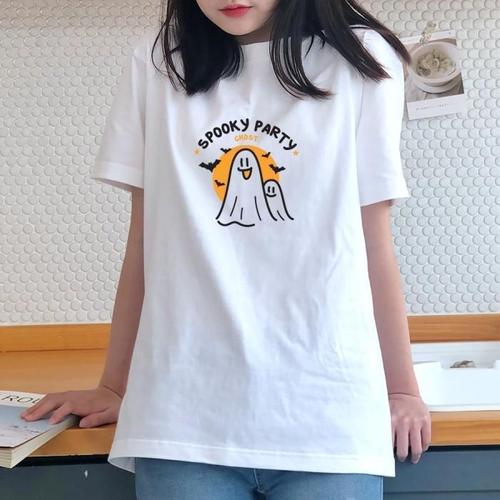 [험블][험블] 스푸키 캐릭터 프린팅 여성 여름 라운드 반팔티셔츠 (5122353A)
