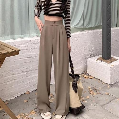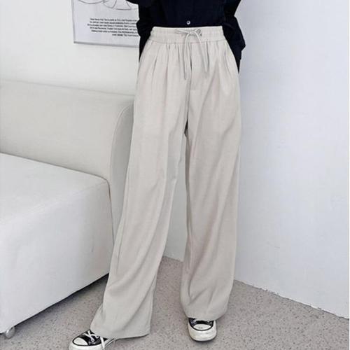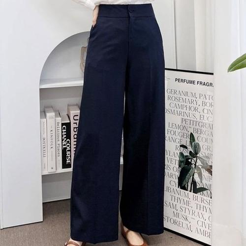 타임퓨어 여성 정장 바지 데일리 캐주얼 통바지 스판 좋은 핀턱 밴딩 일자 와이드 팬츠 사계절 긴바지 슬림 스트레이트 핏