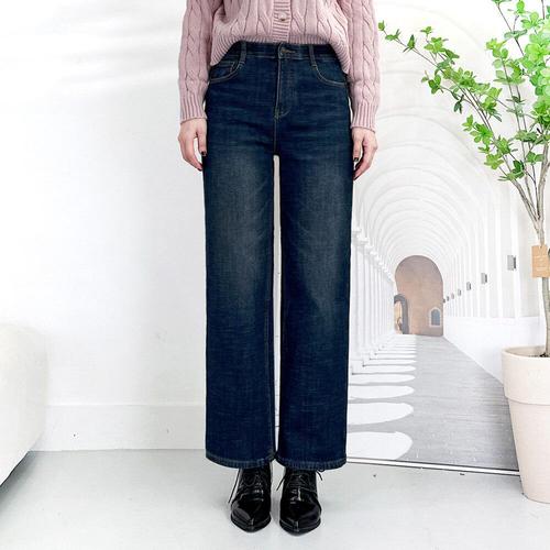 [일공삼에스티]여성 융 기모 밴딩 스판 와이드 청바지/겨울 통청바지