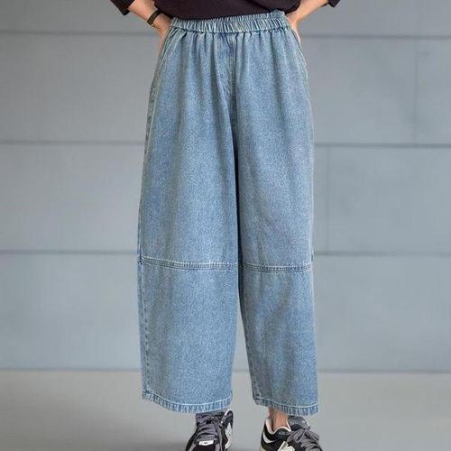 드리다 여자 가을 진청 밴딩 빅사이즈 와이드 통바지 데님 청바지 40-50대 미시 중년여성 캐주얼 출근 선물