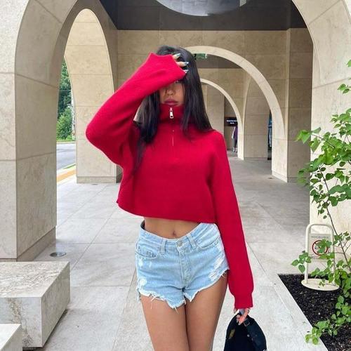 [다잇템]여자 어텀 하이넥 반오픈 라글란 탱크 니트 (18505990A)