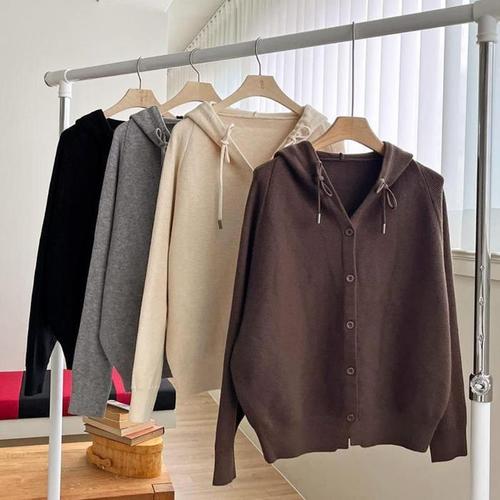 [다잇템]여자 라글란 버튼 후디 브이 가디건 (18986746A)