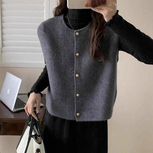 여성 라운드 버튼 니트 조끼 베스트 -FVE0027- 가을 겨울