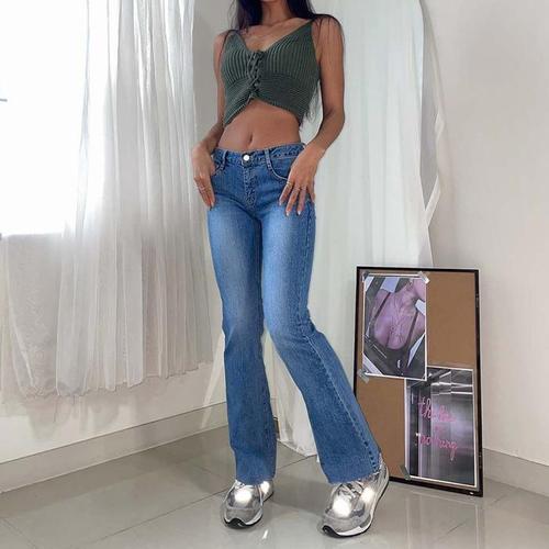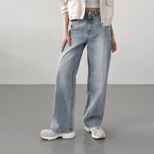 [다잇템]여자 로우라이즈 Y2K 워싱 빈티지 넓은 청바지 (13923800A)