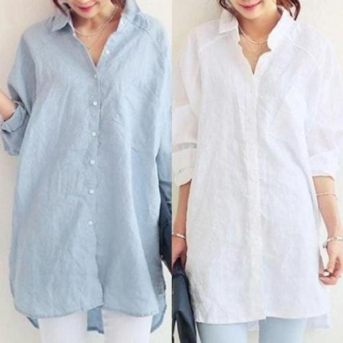 여성용 봄철 루즈핏 롱셔츠 오피스 블라우스 화이트 블랙 WFLN0RN