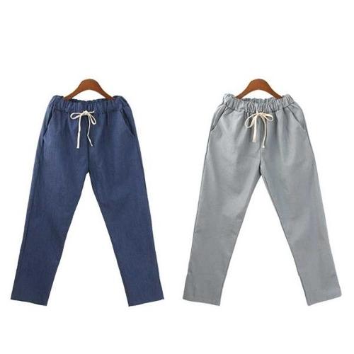 SELEAD 여성 면마 와이드 팬츠 봄 가을 린넨 캐주얼 중년 배기팬츠 베이직 빅사이즈