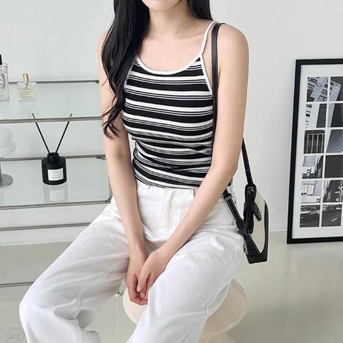 [다잇템]여자 키치무드 레이온 줄무늬 편한 민소매티 (41117085A)
